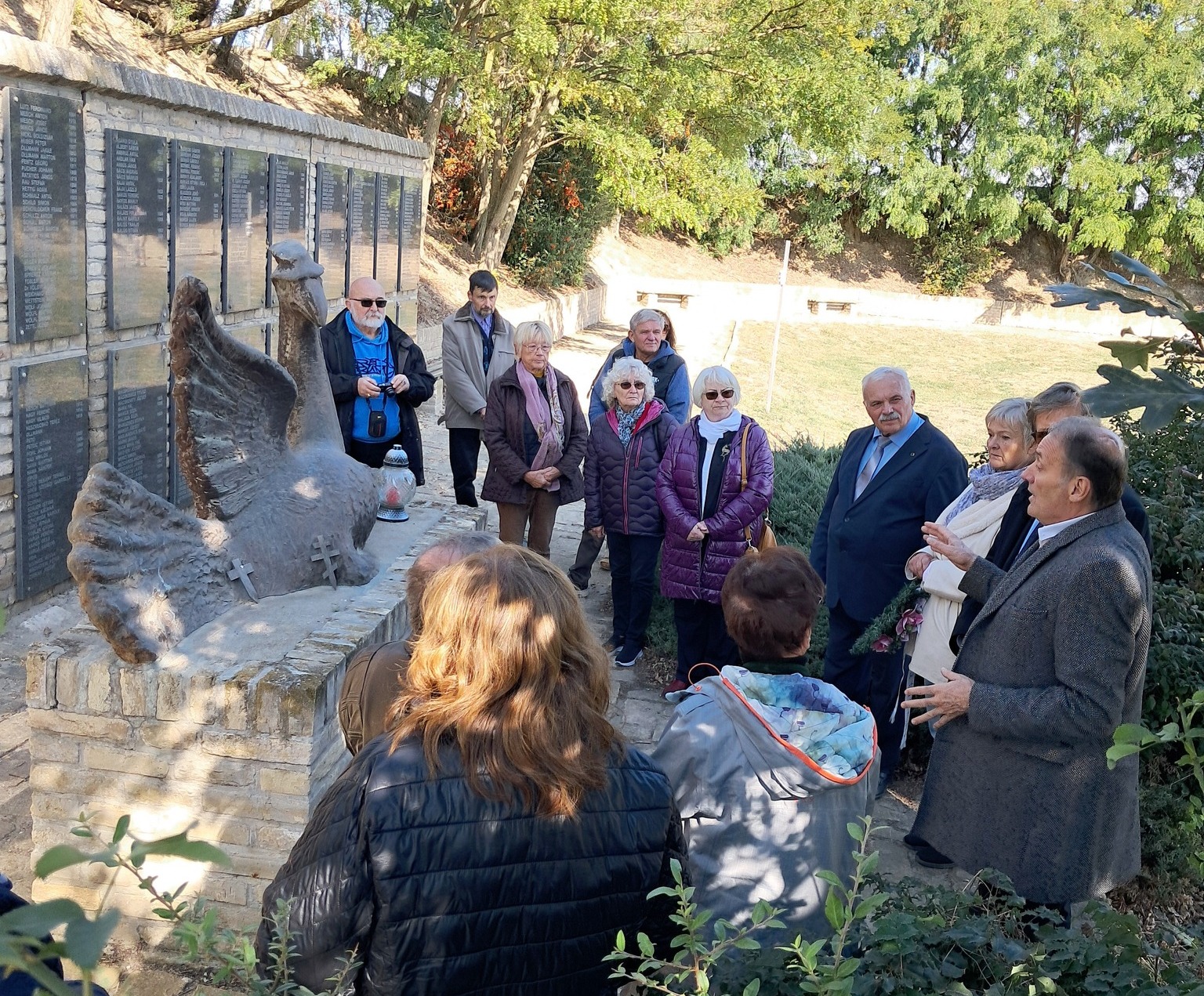 Mehr als ein Drittel von ihnen waren Donauschwaben. Rudolf Weiss erläuterte den Gästen aus Ungarn und der Ukraine vor Ort die tragischen Ereignisse vom November 1944. Am Denkmal für die unschuldigen Opfer wurde ein Kranz niedergelegt.