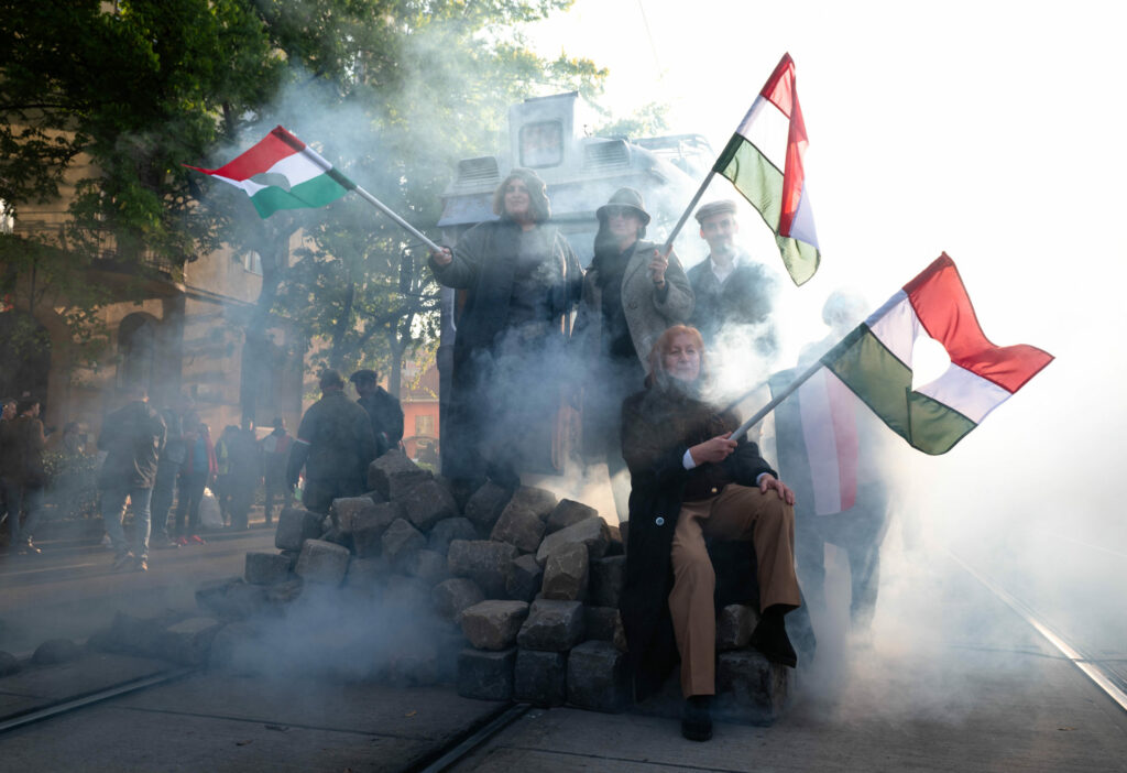 Die Tisza-Partei hatte zu einem „nationalen Marsch“ über die Prachtstraße Andrássy út zum Heldenplatz aufgerufen, Zehntausende folgten. Auf der Wegstrecke waren Installationen zu sehen, um die Straßenkämpfe vom revolutionären Herbst vor knapp 70 Jahren in Erinnerung zu rufen und mit Fotos der Opfer zu mahnen.